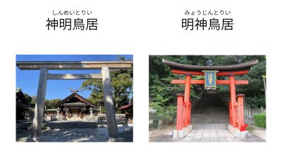 「神明鳥居」:天皇を祀る伊勢神宮をはじめ、天照大御神を祀る神社に見られる形式で、自然の樹木を活かしたシンプルな構造となっています。